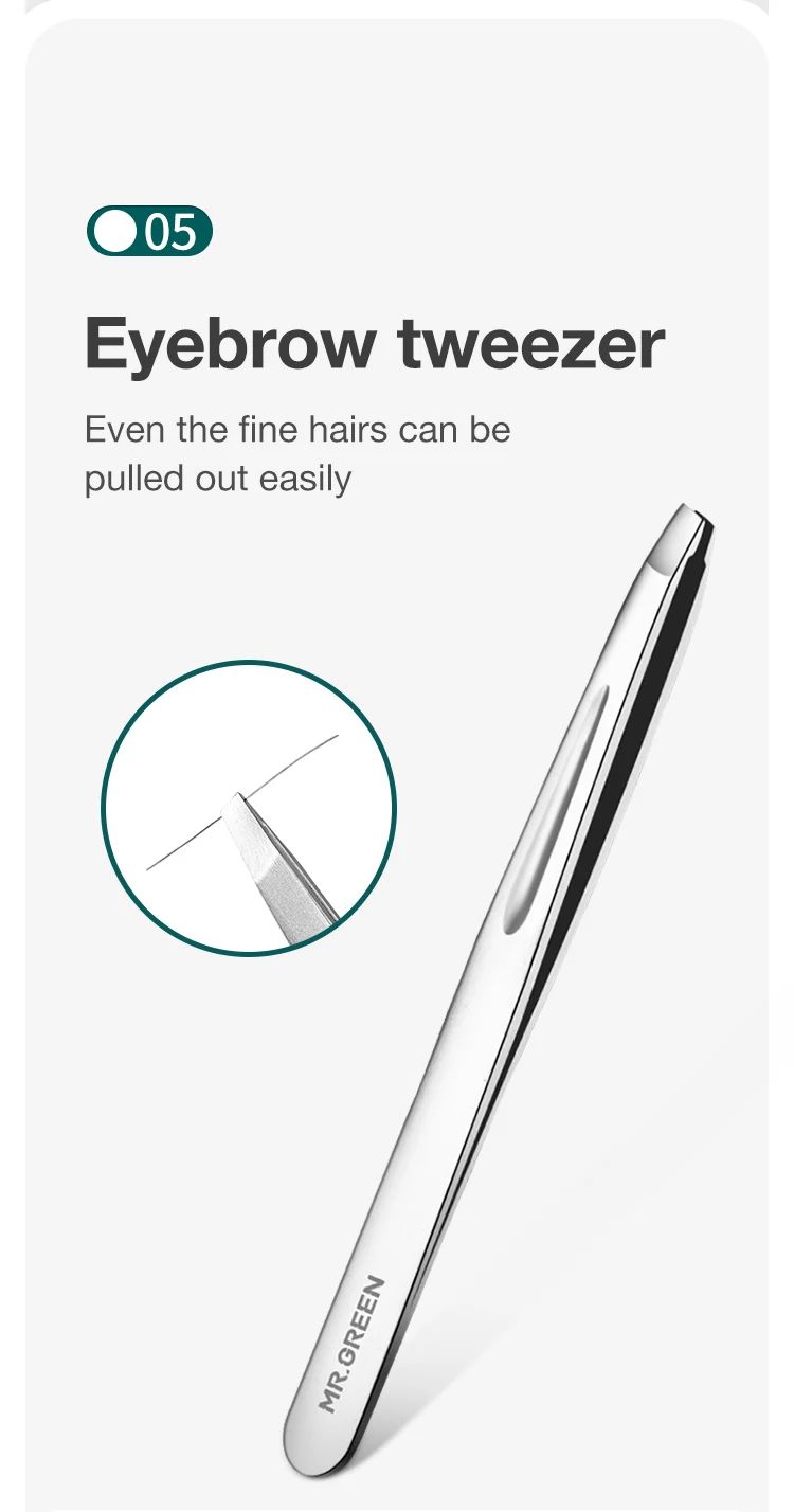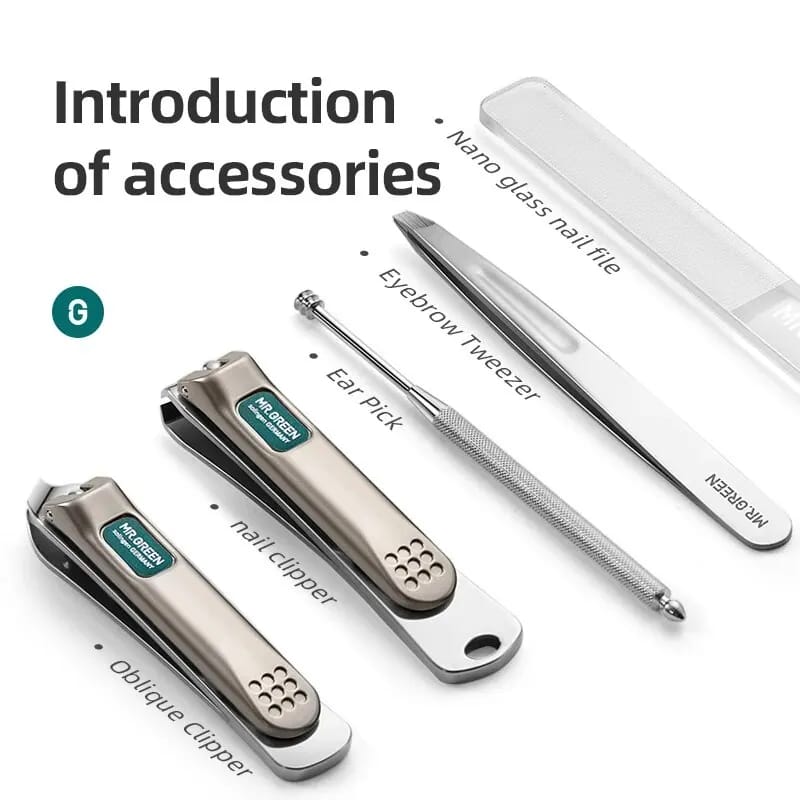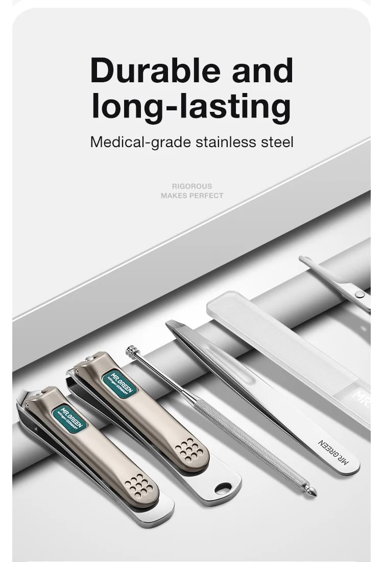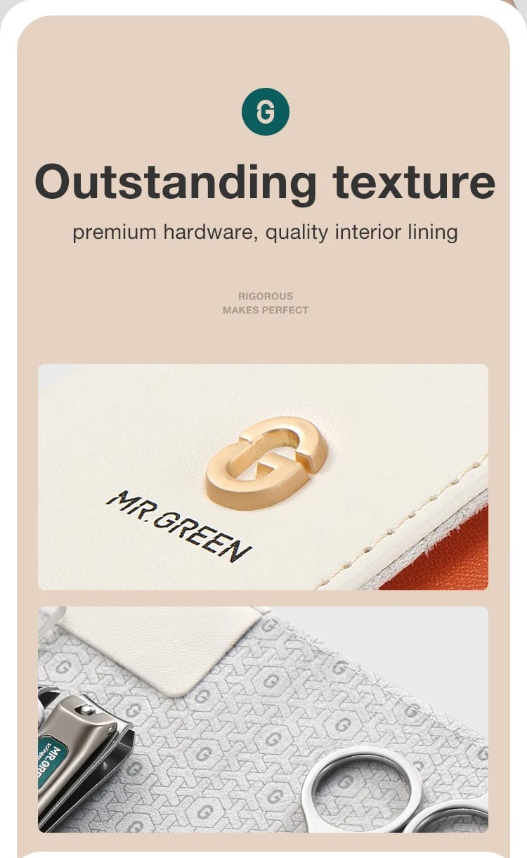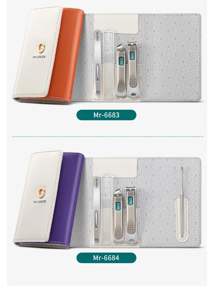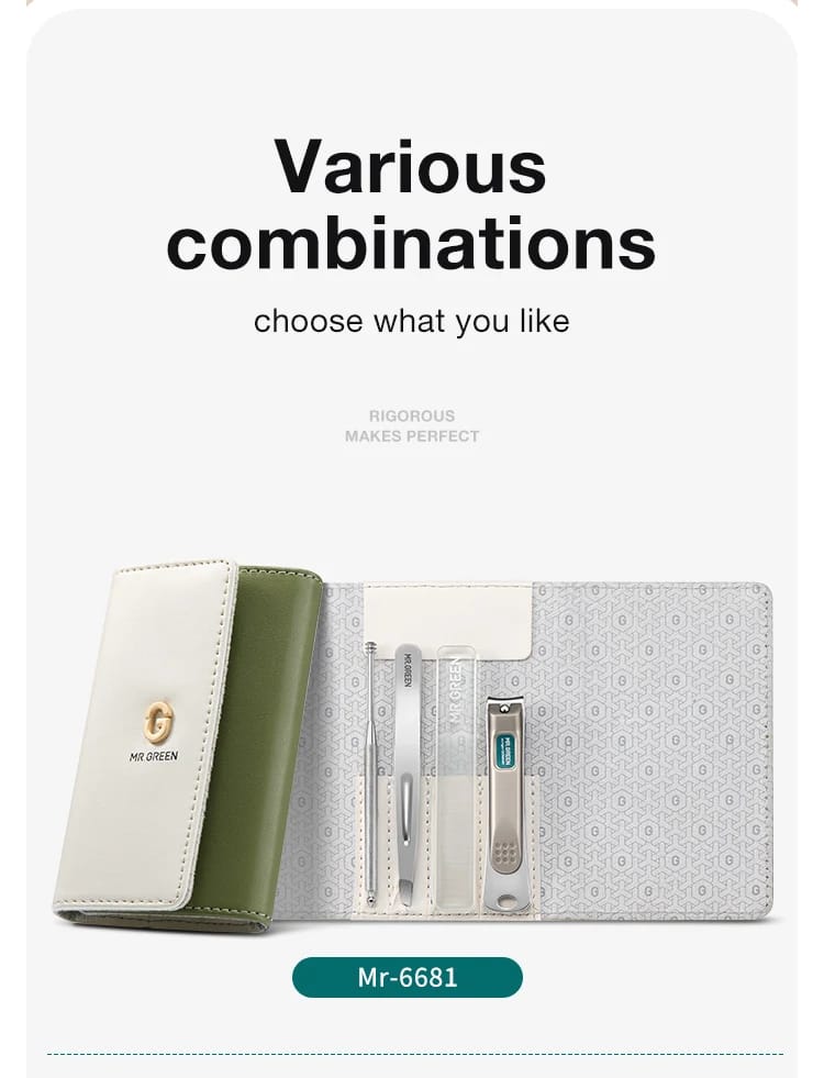 مجموعة مانيكير MR.GREEN كتجمع بين الأناقة والعملية، مصنوعة من الفولاذ المقاوم للصدأ. كتوفر لك كل ما تحتاجه للعناية بأظافرك وحواجبك، وبطريقة مريحة وسهلة في السفر.
